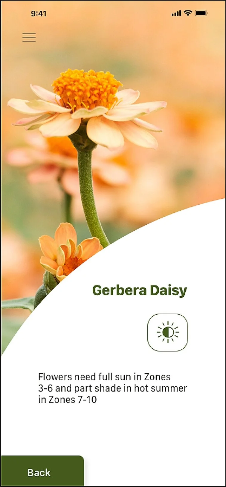 I removed the map feature and replaced it with an option to enter in your zip code so the app could recommend plants according to your climate zone, added more search filters, and created an option for the user to see more information when researching.